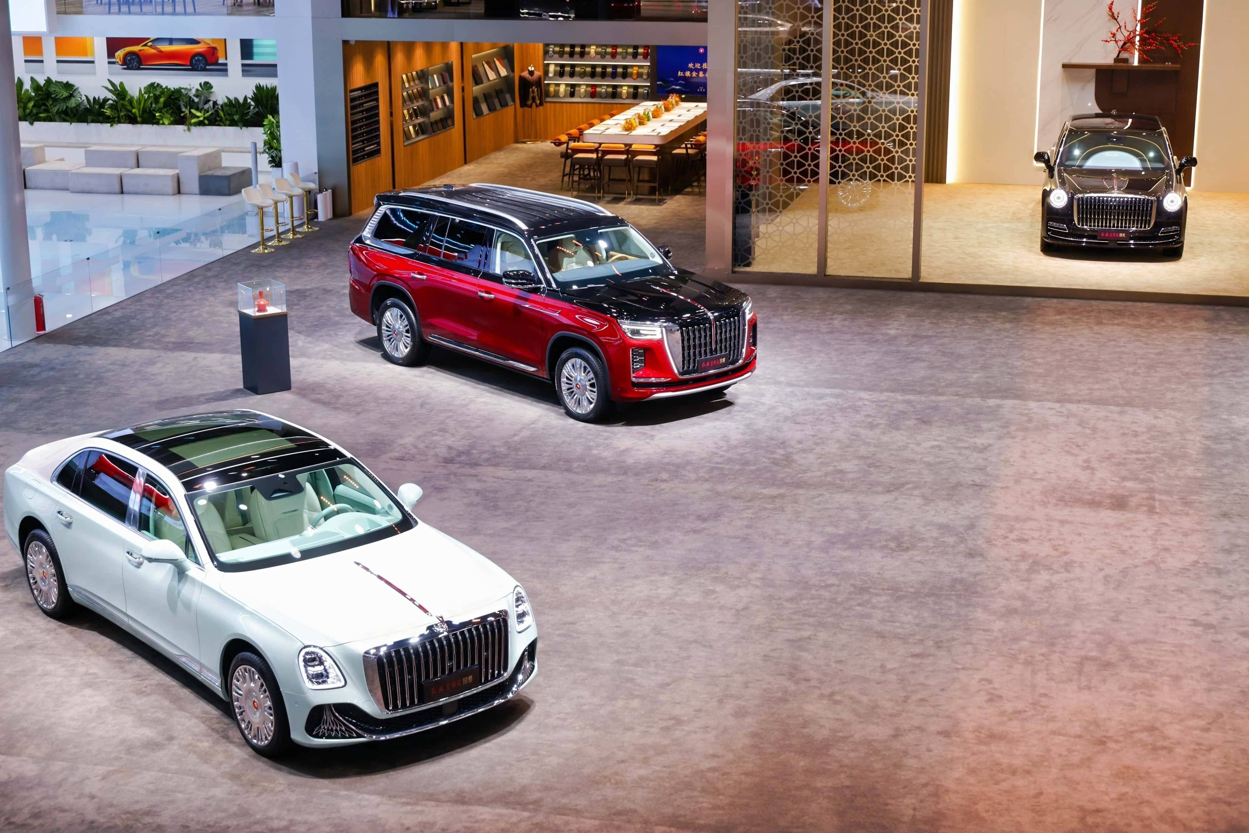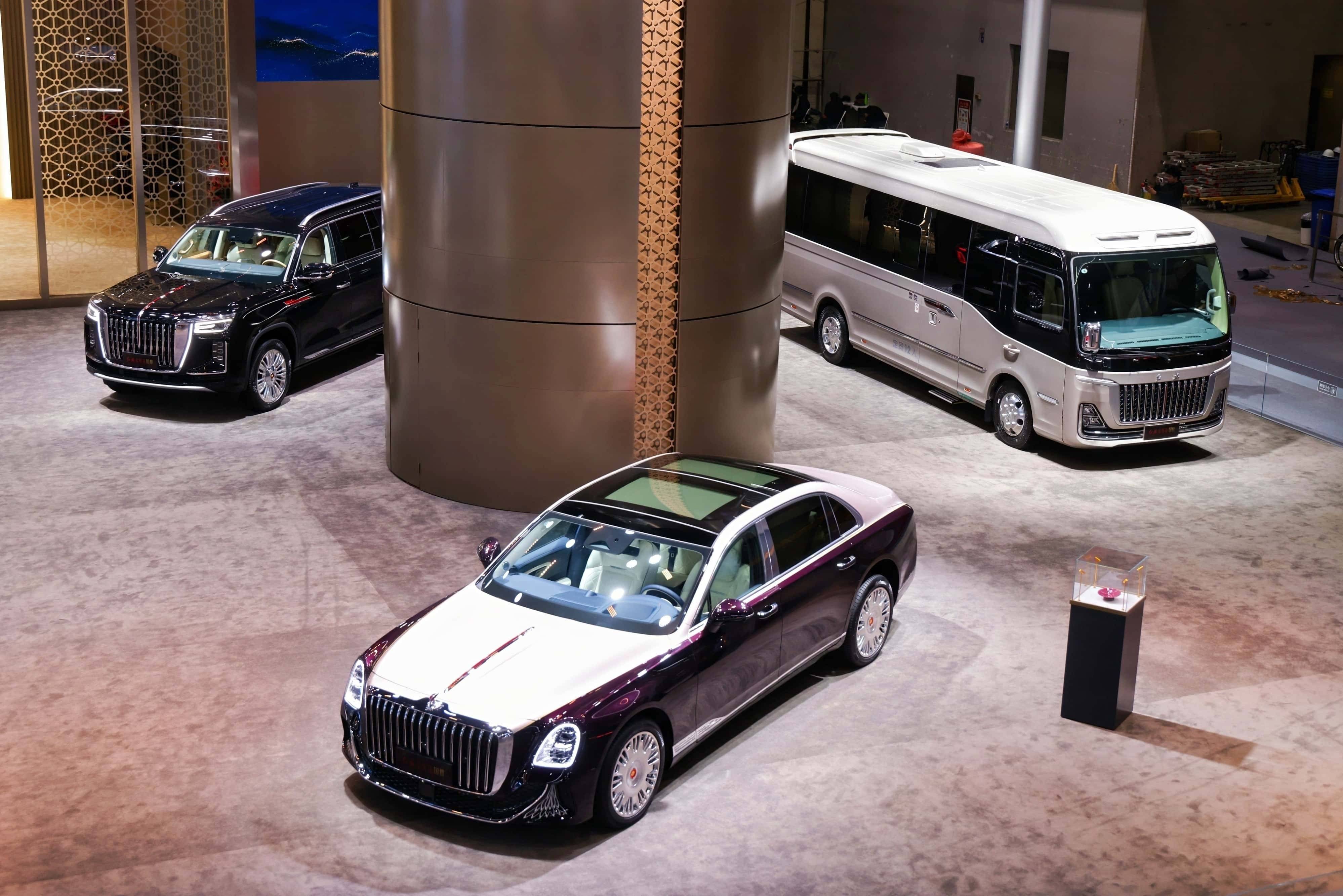 本次車展的核心焦點,無疑是國禮、國雅、國耀、國悅組成的國賓車隊集體亮相,四款車型各展所長,共同勾勒出紅旗金葵花覆蓋全場景的超豪華產品矩陣。作為全場最受矚目的明星車型,國禮“丹霞”主題定制版完成全球首發,以廣東韶關丹霞山為靈感源泉,將“色如渥丹,燦若明霞”的地貌奇觀,通過大漆、刺繡等非遺工藝沉淀于座艙細節。四門門飾板上的漆畫,歷經非遺匠人55道工序手工制作,每一寸肌理都凝聚著千年技藝的溫度;自主研發的4.0L V8雙渦輪增壓發動機,搭配適時四驅系統,讓這款定價718萬元起的頂級旗艦,既有藝術品的收藏價值,又有頂級豪車的澎湃性能。更值得稱道的是,其提供的數十萬種定制組合與15種設計師推薦款式,讓每一臺國禮都成為獨一無二的文化載體。