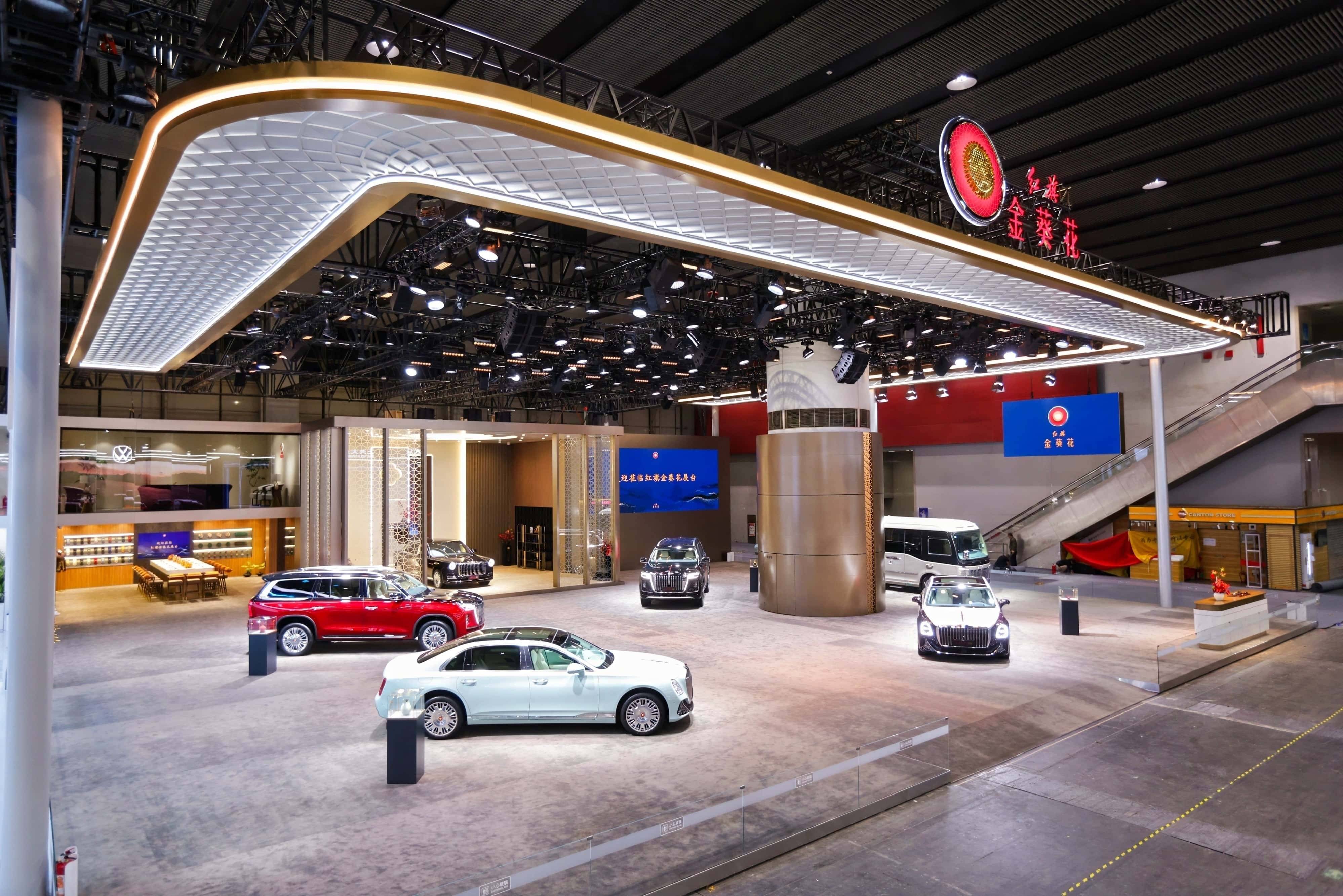 展臺的煥新是紅旗金葵花本次參展的第一道高光。金葵花將品牌煥新后的VI體系與經典金葵花Logo深度融入空間敘事,金葵紅與華耀金的色彩交織,暗合“天人合一”的東方哲學,既有國車六十余年積淀的莊重底蘊,又不乏超豪華品牌應有的精神氣度。