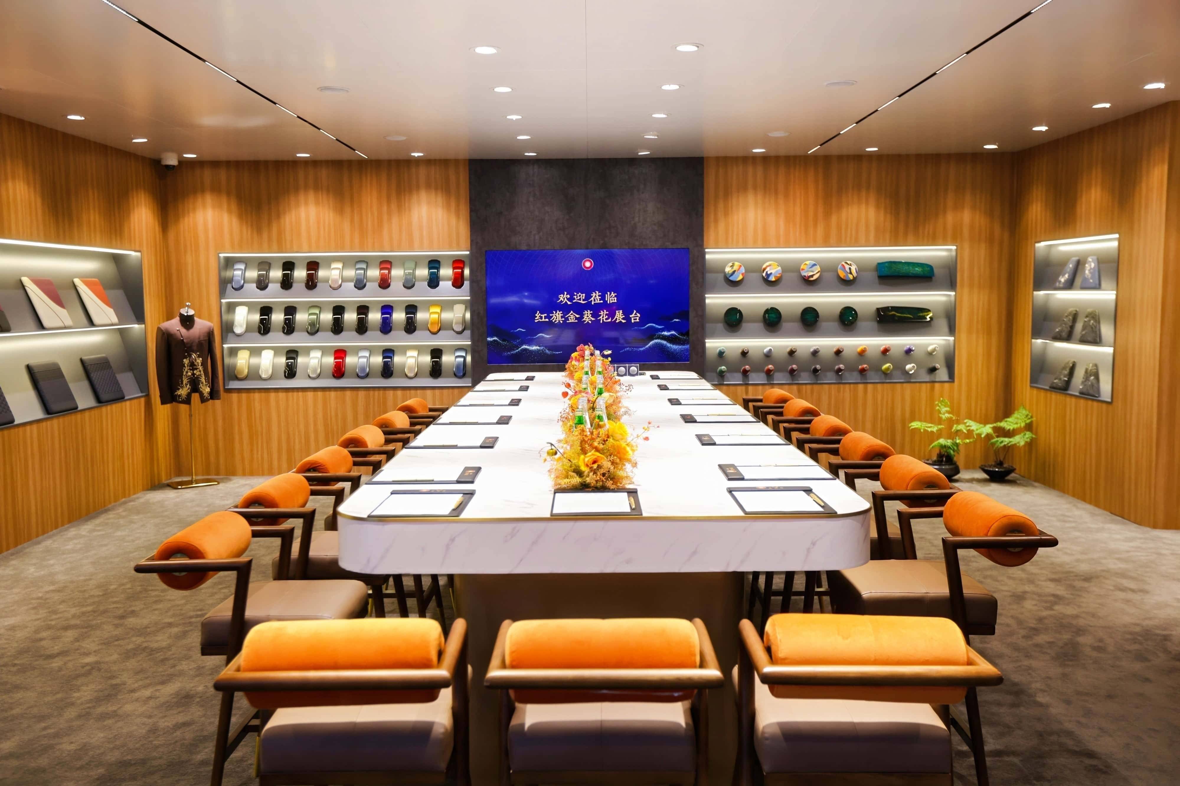 以“中和、禮序”為脈絡的布局,讓“國賓之道”的品牌主張不再是抽象的口號,而是轉化為可觸摸、可感知的空間體驗——這里不僅是汽車的展示場,更是東方文化的交流地,每一處細節都在無聲傳遞著中式超豪華獨有的文化自信。這種將品牌理念與空間美學深度綁定的設計,遠超傳統車展展臺的功能范疇,成為金葵花區別于西方豪華品牌的鮮明標識。